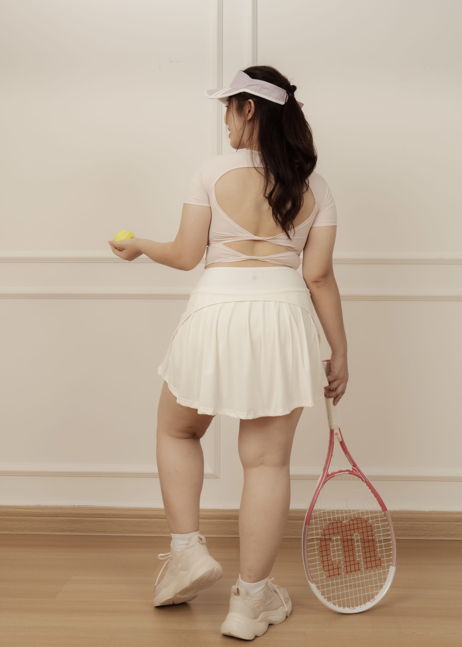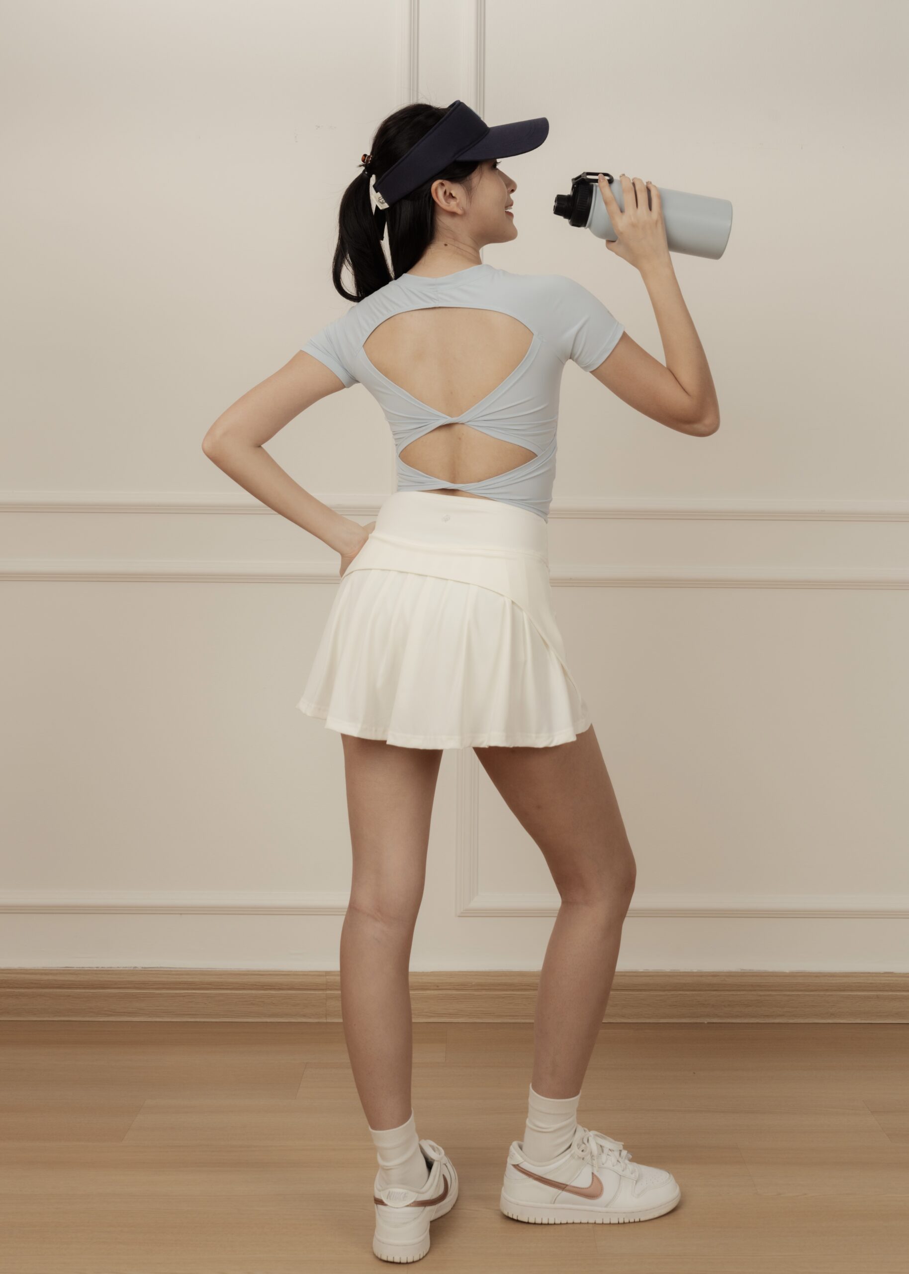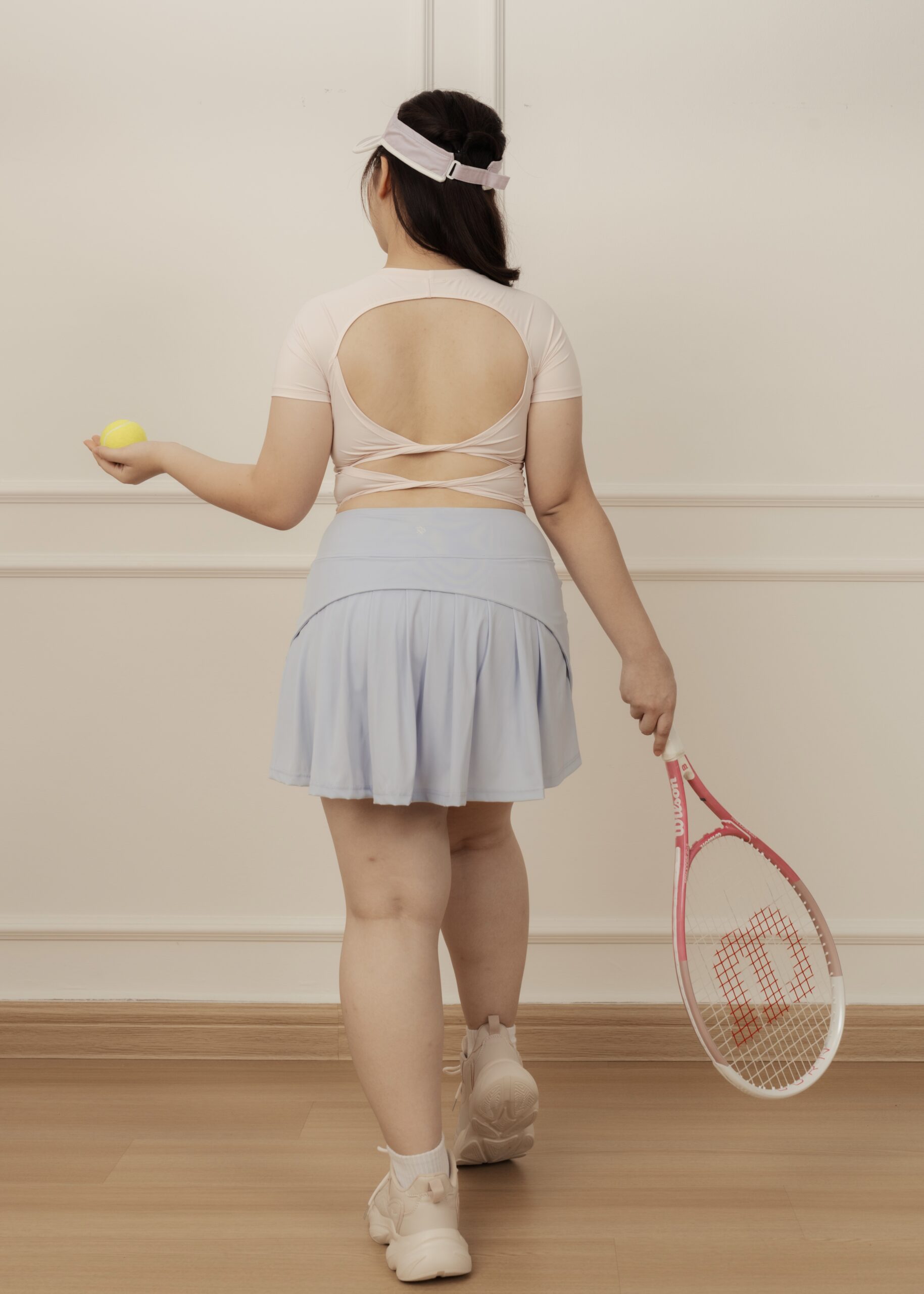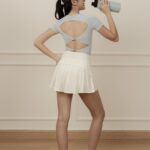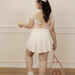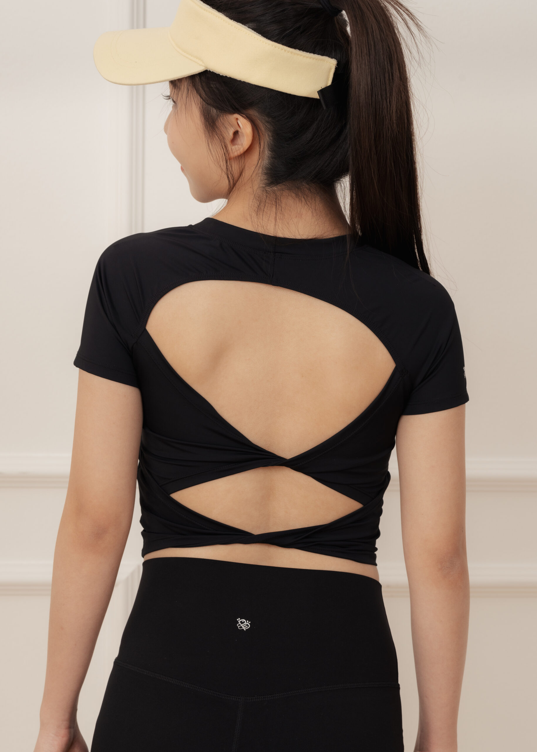 - Double-knots open-back design softens the back’s contours and add a striking touch when turning around