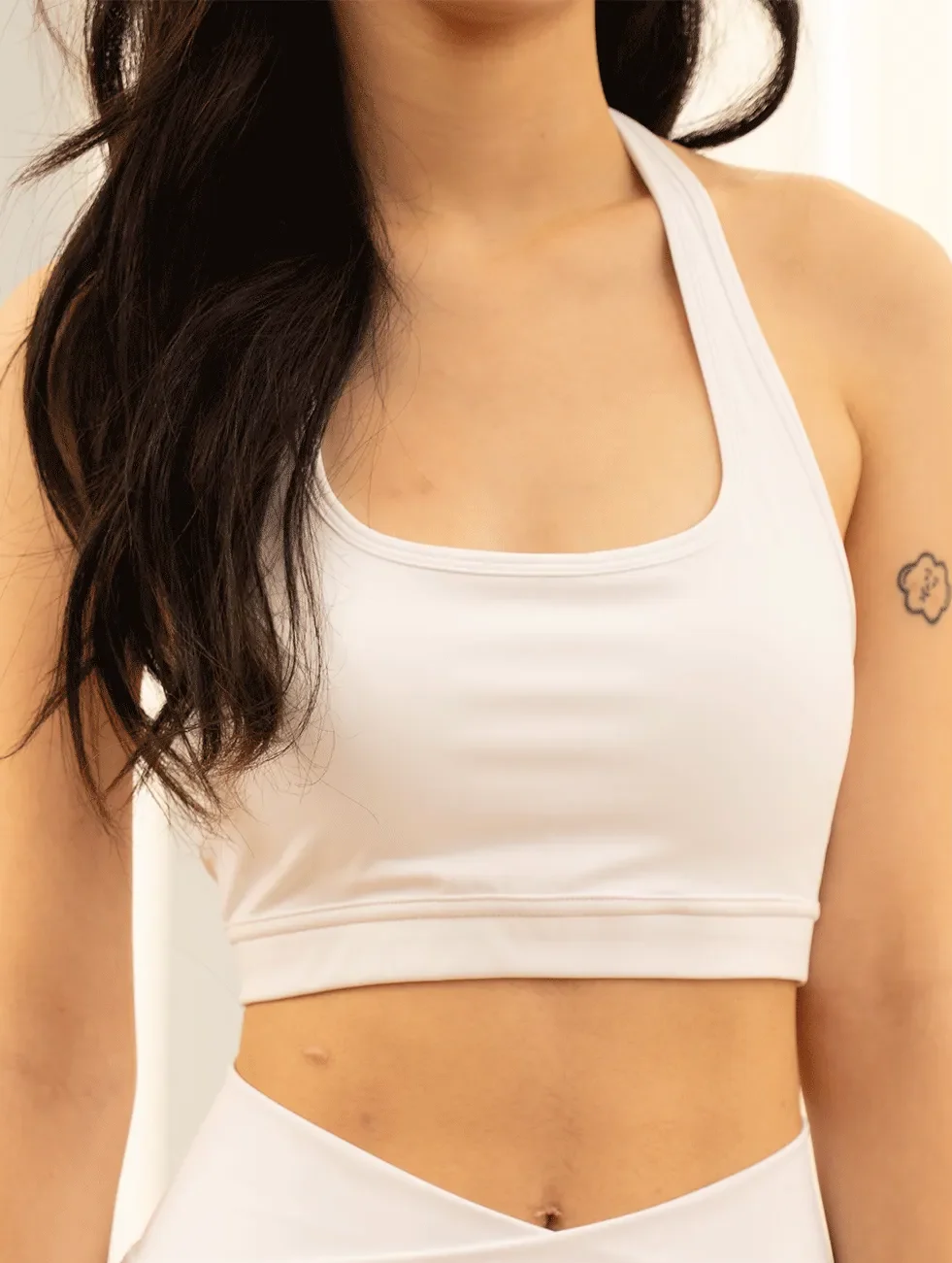- Halter style bra top with body-hugging fit