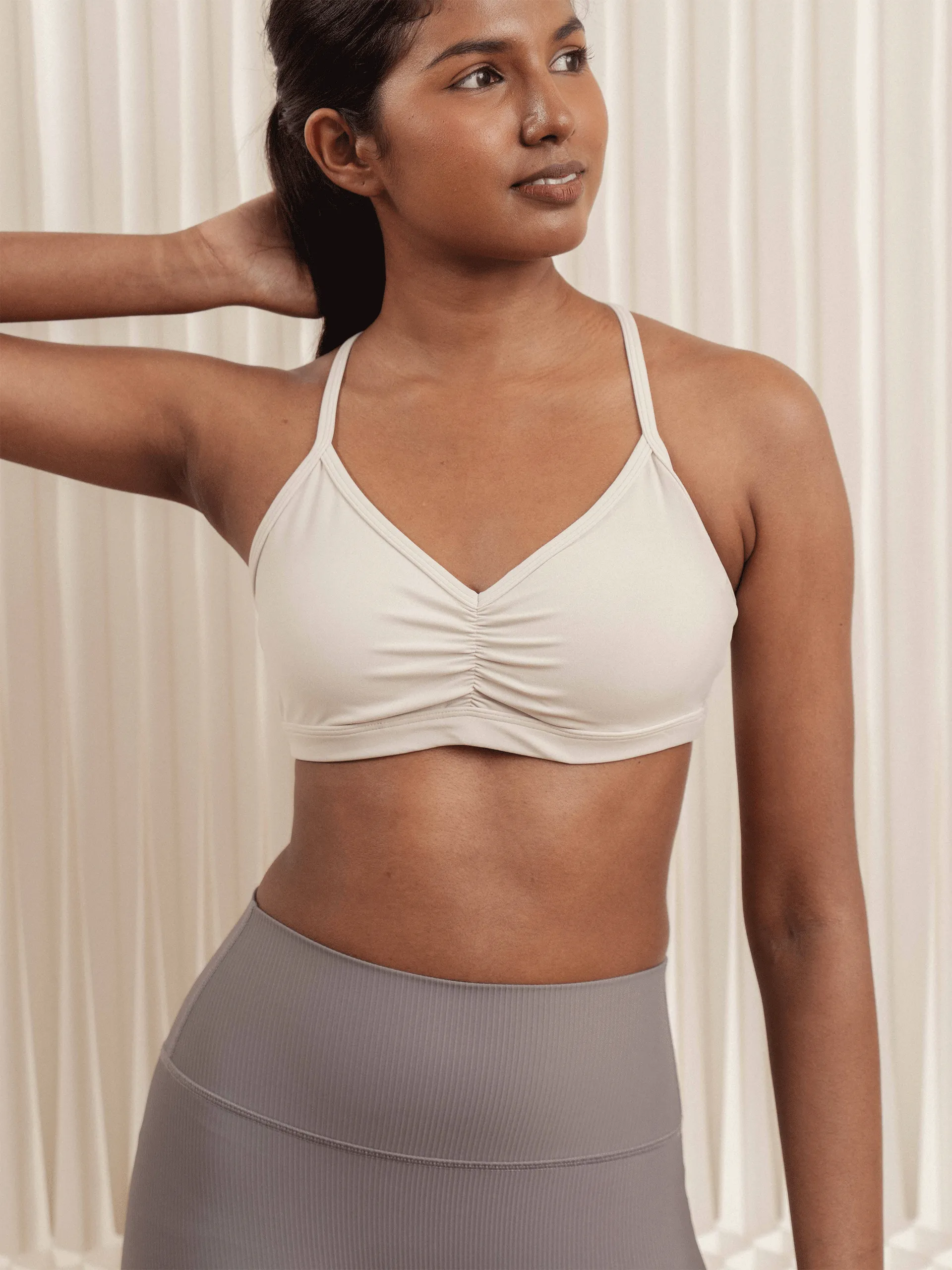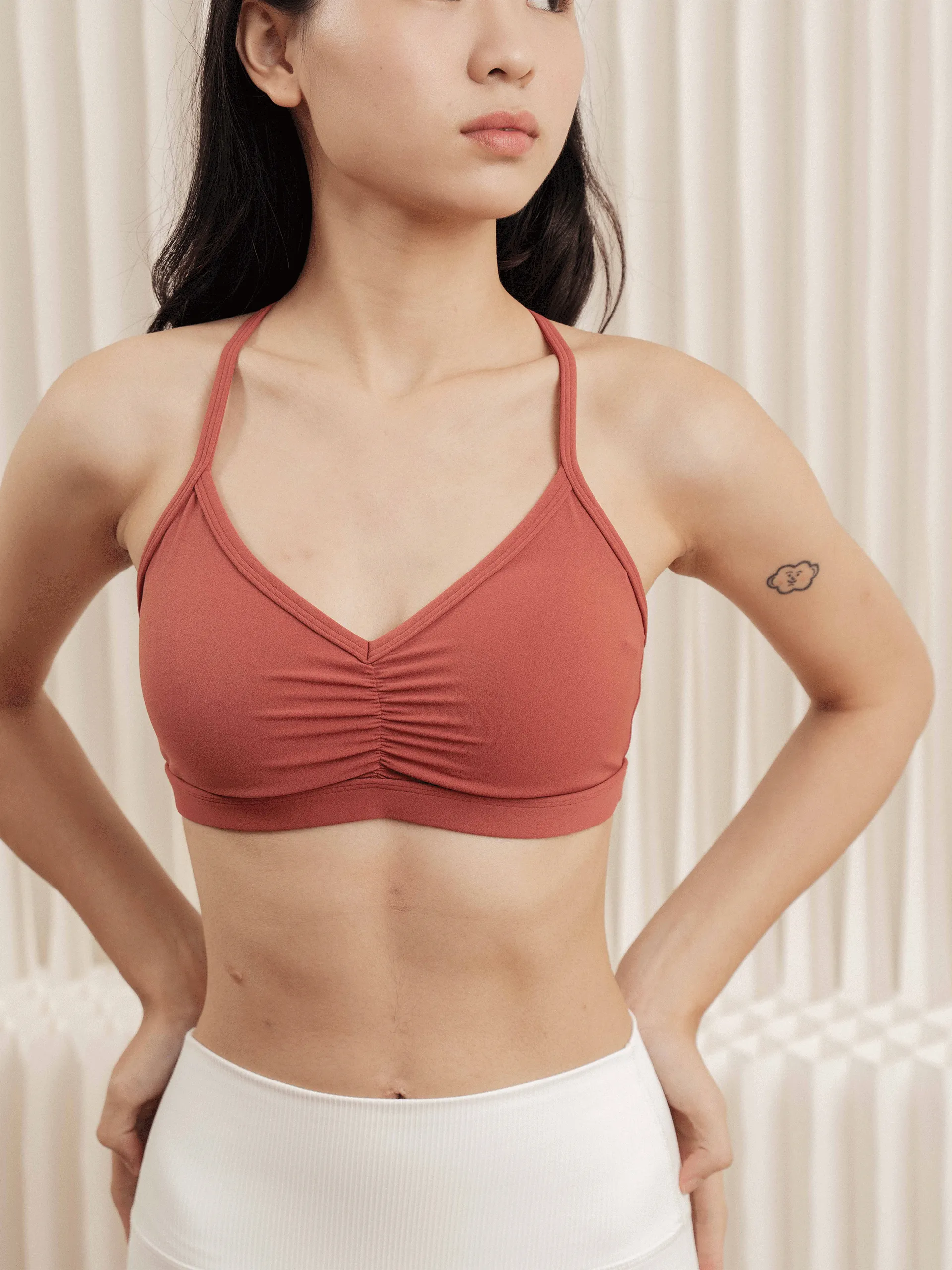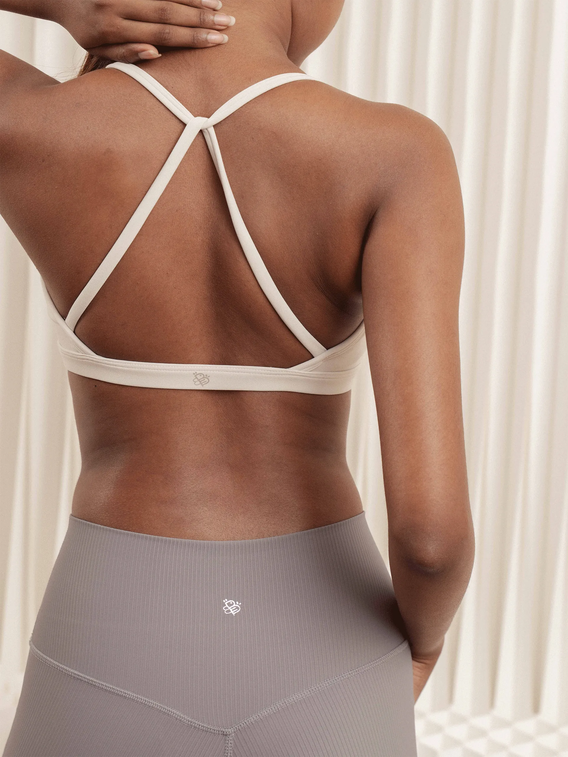 - Minimal strappy back style intended for low-impact activities