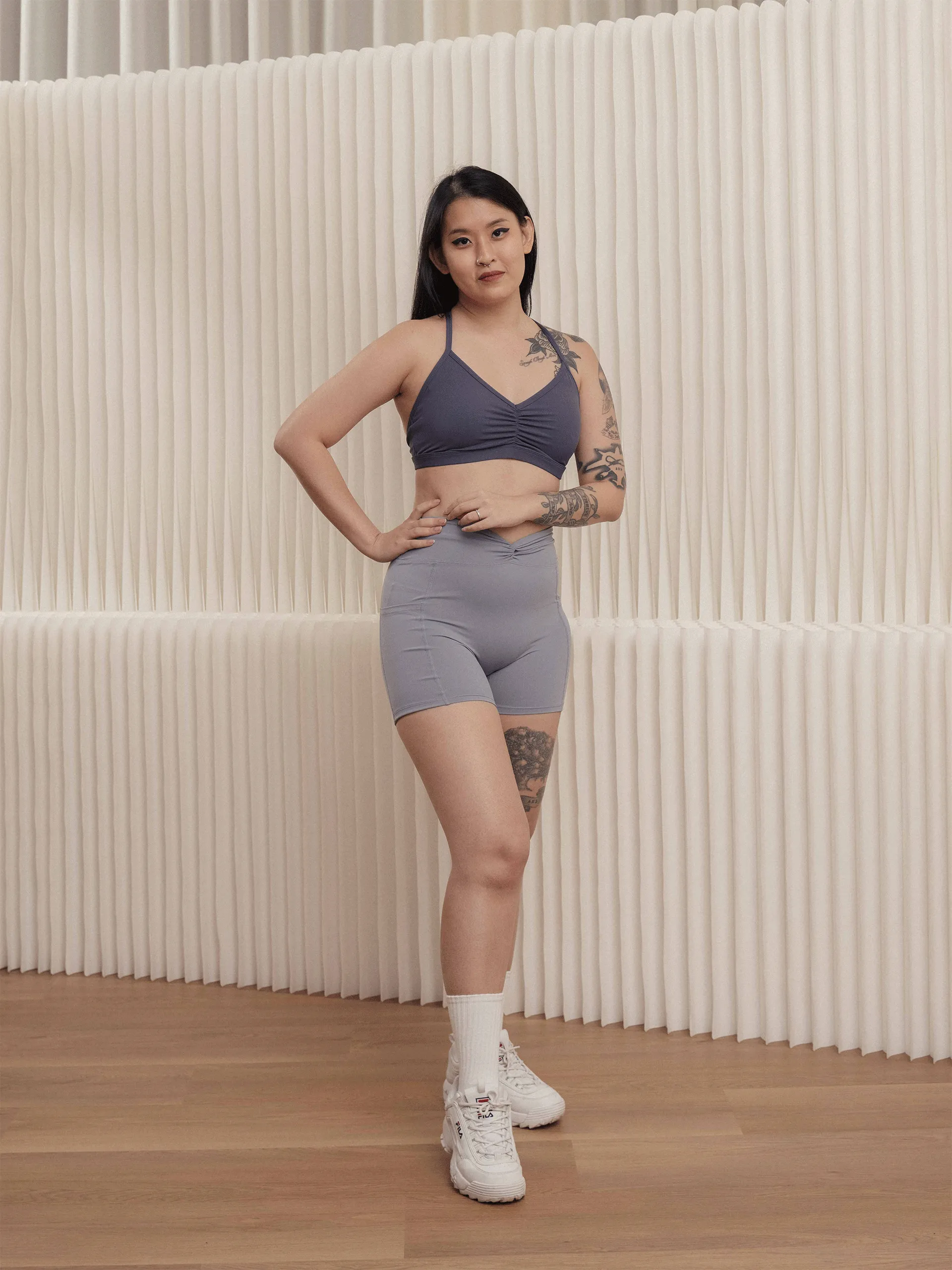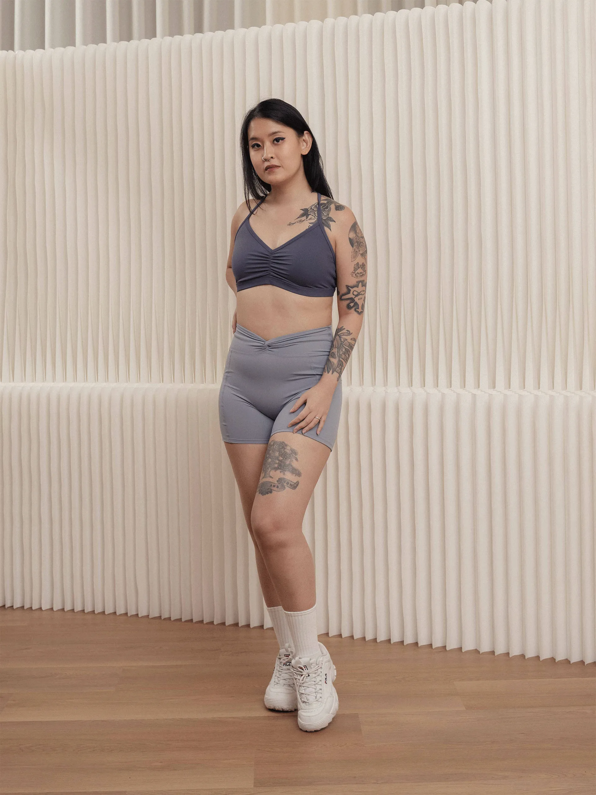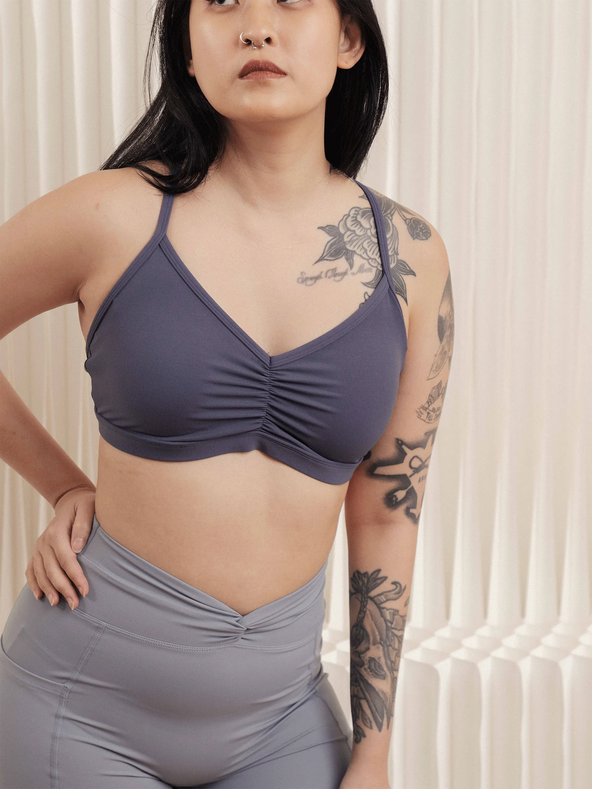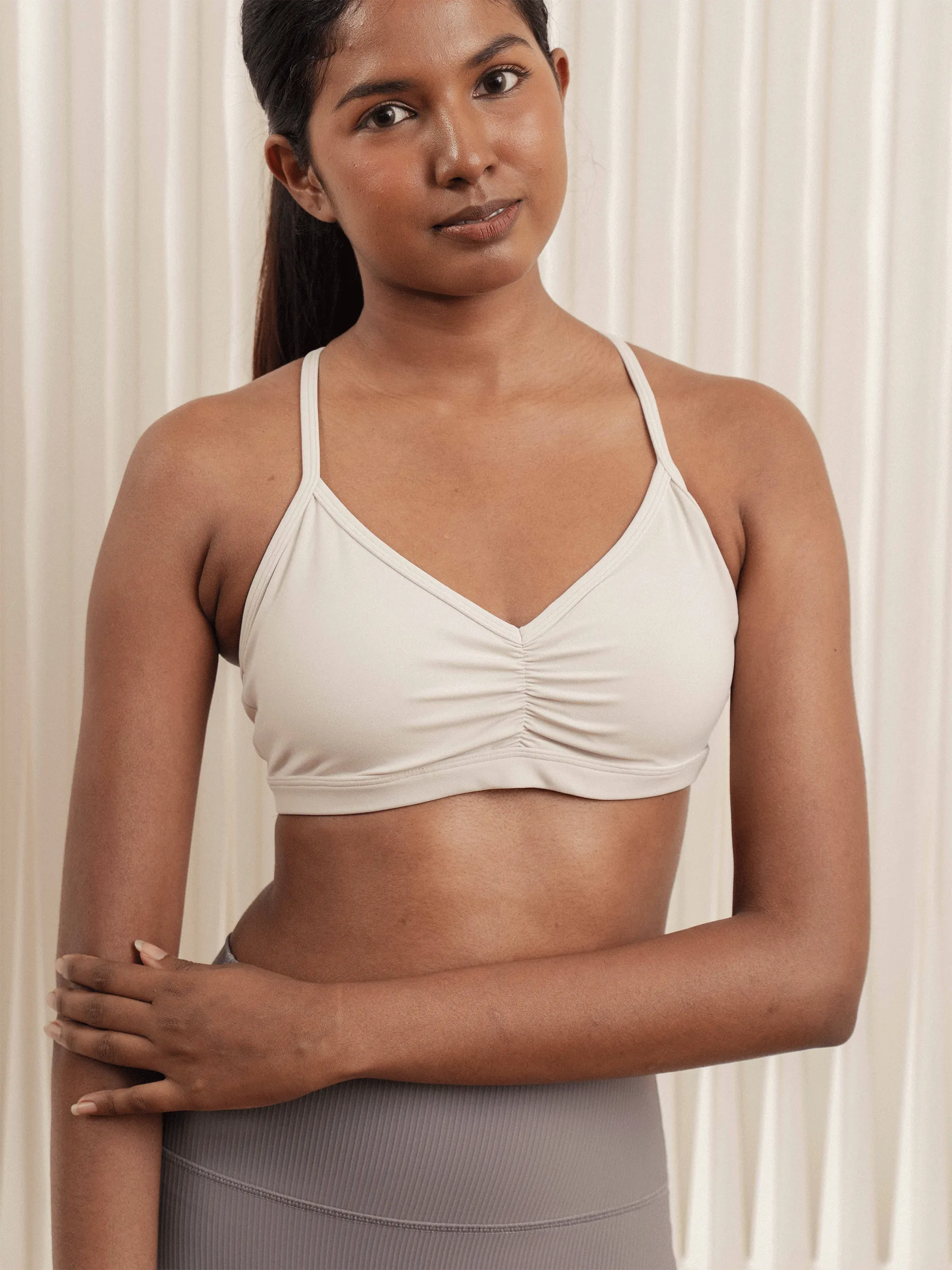 - Minimal strappy back style intended for low-impact activities